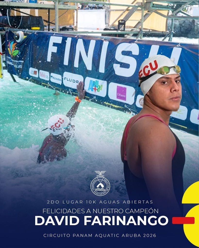 La FENA, expresa su reconocimiento y felicitación a nuestro destacado nadador David Farinango Berrú, quien tuvo una sobresaliente participación en el CAC Qualifier Aruba 2026, uno de los eventos de mayor exigencia en la disciplina de aguas abiertas.